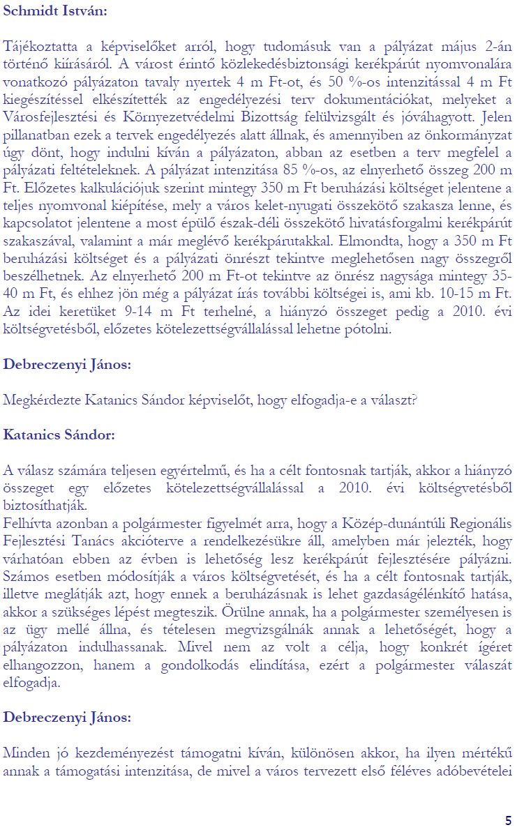 Jegyzőkönyvrészlet 2009. áprilisából: