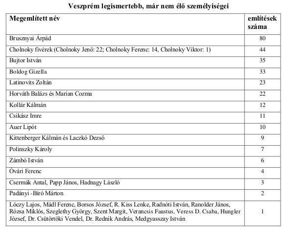 Mást nem is emelek ki, csak azt, hogy Veszprém legismertebb, már nem elő személyiségei között említenek még élő- közös örömünkre még köztünk lévő- személyiségeket! Így például Veress D. Csaba hadtörténészt, Veszprém egyik valóban neves és közismert személyiségét!