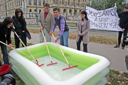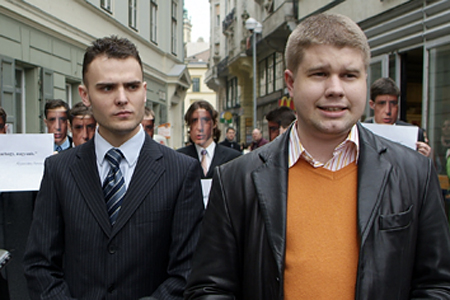 "A fiatalok egy Gyurcsányról készült fotóval a fejükön és egy Gyurcsány-idézetet maguk elé tartva vonultak fel Budapesten, a Deák téren.