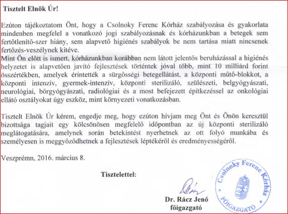 Köszönöm szépen, hogy a kérésemet fontosnak tartotta, eljárt az általam feltett kérdések ügyében és eljuttatta hozzám főigazgató úr válaszlevelét. A napokban éppen összefutottam Rácz főigazgató úrral az utcán és ő is jelezte, hogy szívesen vár minket az intézményben egy előre egyeztetett időpontban, amikor személyesen is meggyőződhetünk a levelében leírtakról.