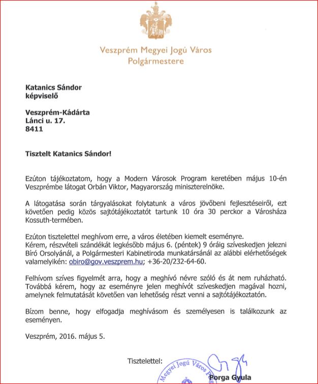 Fontosnak tartom ugyanakkor felhívni Polgármester úr a figyelmét a következőkre. Azt örömteli eseménynek tartom, ha a miniszterelnök ellátogat városunkba és érdemi módon tájékozódik a város fejlesztési elképzeléseiről. Abban sem látok semmi kivetnivalót, ha a miniszterelnök által támogatott elképzelésekről közösen tájékoztatják a nyilvánosságot.