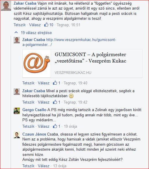 NĂ©medi megint csak hallgatott. Nincs pedig szabadságon, legalábbis a városban lehetett ma is látni utcán közlekedve. MĂ©g a Fidesz frakciĂłvezetĹ‘je sem állt ki sajtĂłzni, csupán egy nevetsĂ©ges közlemĂ©nyt adtak ki, ami nyilvánvalĂłan nem állja meg a helyĂ©t, valĂłtlan állĂtások is szerepelnek bĹ‘ven a közlemĂ©nyben. A Pesti Srácok, akik egyĂ©rtelműen fideszközeliek, a közössĂ©gi oldalon cikket is Ărtak a közlemĂ©nyre alapozva, ami bĹ‘dĂĽletes állĂtásokat tartalmaz. Olyasmit is leĂrtak, hogy a polgármester önmagát jelentette fel. Megjegyzem, a prĂłbatakarĂtásos ĂĽgyben ismeretlen tettesek ellen a feljelentĂ©st is azĂ©rt volt kĂ©nytelen megtenni a polgármester, mert addigra több sajtĂłtájĂ©koztatĂłt tartottunk, ahol nyilvánvalĂłvá vált a korrupciĂłgyanĂş Ă©s a nyomozás is elkezdĹ‘dött Ă©s errĹ‘l is tudott VeszprĂ©m Ă©rdeklĹ‘dĹ‘ közvĂ©lemĂ©nye, annak ellenĂ©re, hogy valĂłban szabad Ă©s fĂĽggetlen sajtĂł már mutatĂłban is alig akad ebben a városban.