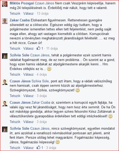 Az alábbiakban láthatják, hogy a Pesti Srácok közössĂ©gi oldalon közölt Ărásához mennyire izgalmas hozzászĂłlás-áradat alakult ki. KĂ©pes volt ismĂ©t Ă©getni magát VeszprĂ©m bukott fideszes alpolgármestere, Czaun János hozzászĂłlásaival. Több hozzászĂłlĂł is szĂ©pen helyrerakta igencsak demagĂłgra sikeredett hozzászĂłlásait a mostanában gyakran papjánosozĂł kĂ©pviselĹ‘nek.