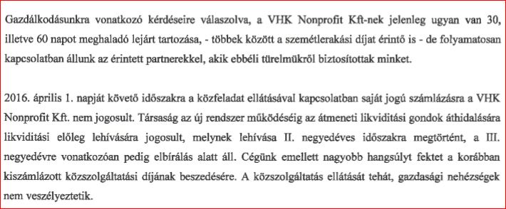 MegkĂ©rdeztem a napokban, levĂ©lben a VeszprĂ©mi HulladĂ©kgazdálkodási Kft ĂĽgyvezetĹ‘jĂ©t, hogy vannak-e likviditási gondjaik. Válaszában az ĂĽgyvezetĹ‘ megĂrta, hogy az átmeneti likviditási gondjaik (mert, hogy azok tehát vannak, mondom ennek alapján Ă©n) áthidalására likviditási elĹ‘leget hĂvhatnak le. A II. negyedĂ©vit már megkapták, de a III. negyedĂ©vi elbĂrálás alatt van. OkĂ©, vĂ©gĂĽl is nincs mĂ©g szeptember.