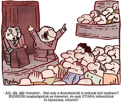 Sistergő gyűlölet | 2010-12-02 18:41:27 | A Fidesz gátlástalan, populista, jogállami normákon átgázoló politikájára nincs magyarázat és nincs mentség. Ami ma történik, azért a történelmi felelősséget egyedül a Fidesz–KDNP pártszövetség viseli. Az ide vezető út kikövezésében azonban a korábbi kormánypártok is részt vettek, és ha bízunk abban, hogy Magyarországon belátható időn belül esély lesz a demokratikus jogállam újraépítésére, akkor ehhez az első lépés a kialakult helyzetért viselt felelősséggel való őszinte szembenézés.