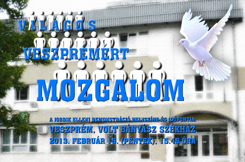 A Jobbik ellenes tüntetéshez a Párbeszéd Magyarországért is csatlakozik! | 2013-02-08 15:27:01 | A Világos Veszprémért Mozgalom február 15-re tervezett demonstrációjához csatlakozik a PM, azaz a Párbeszéd Magyarországért Mozgalom is! Ők sem maradtak közömbösek, Önök se legyenek közömbösek! :)